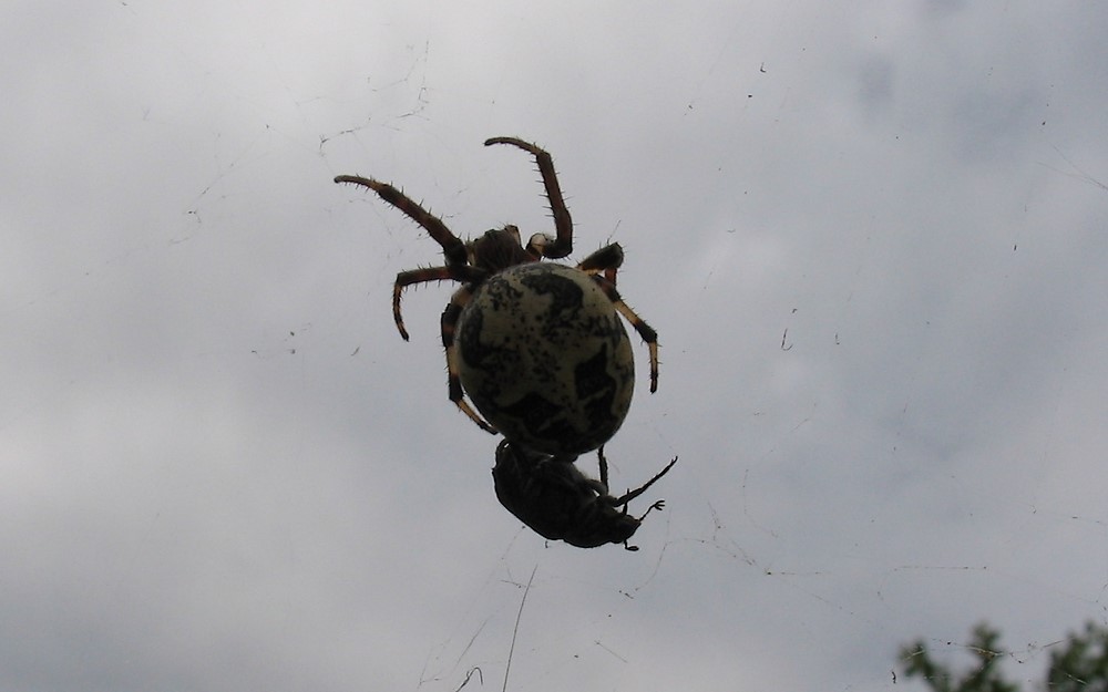 Un petit coléoptère pris dans sa toile - 09 juillet 2006